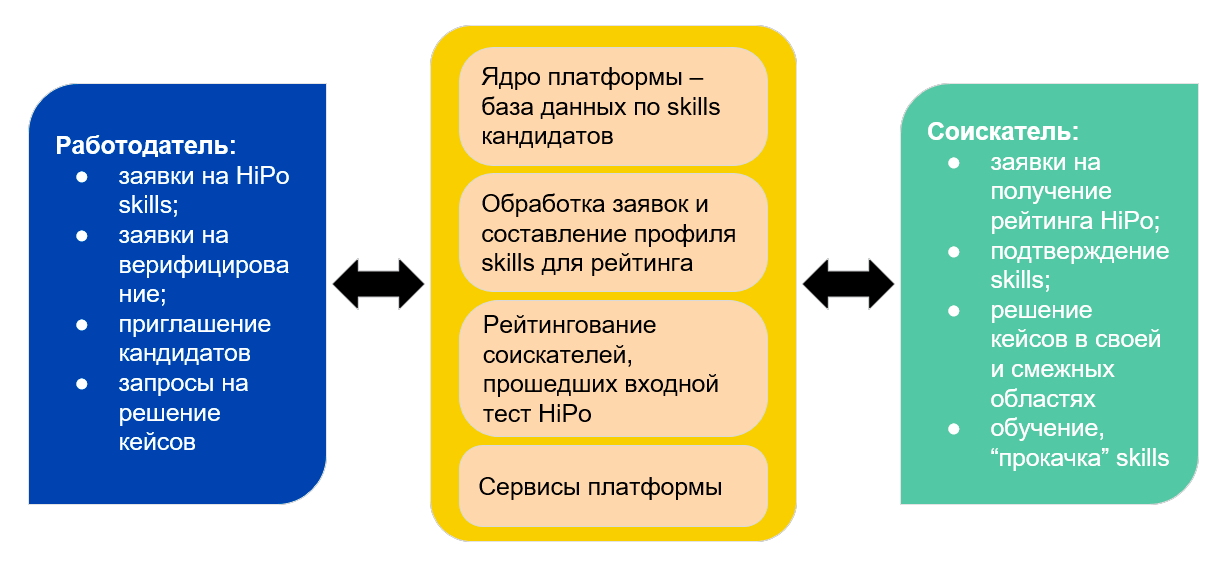 Идея состоит в том, чтобы искать ключевых работников по имеющимся у них навыкам (skills), причём прежде всего — гибким навыкам (soft skills), составлять и подтверждать профиль навыков кандидатов, рейтинговать их и предлагать работодателям в соответствии с их потребностями. Для мы разработали этого специальные методологии, при реализации которых используется искусственный интеллект (AI).